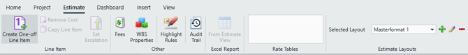 This article provides a list of the buttons that appear in the ribbon menu when on the Estimate view, along with a brief description for each function, and some applicable links to articles with more detail.