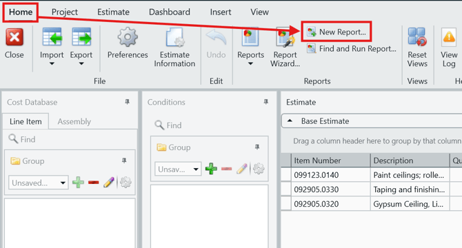 - In the main Ribbon, click on New Report...