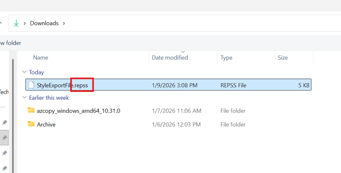 - Navigate to and select the .repss file you exported earlier.
