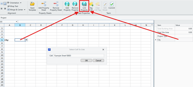 - Click the Link Property button in the top ribbon.