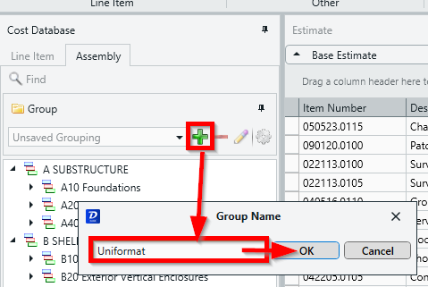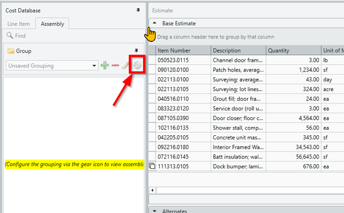 How to configure groupings, add line items to estimate, and update assemblies on the fly