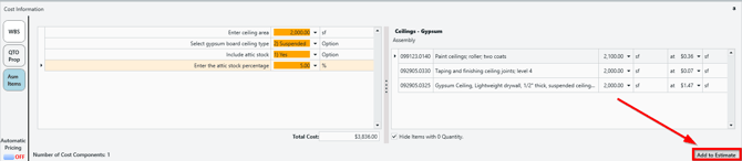 Once all questions are answered, you can verify the staged line items before clicking Add to Estimate.