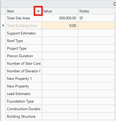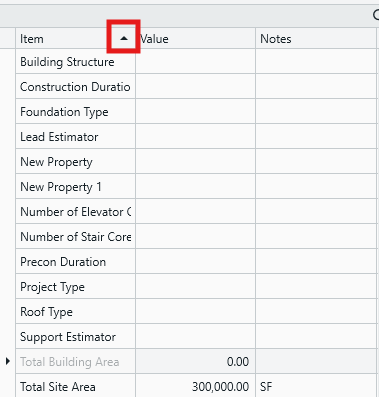 Sorting by the Notes column can be resourceful. Depending on how you use the Notes column, you can sort by Notes to group properties of the same unit of measure, or you can insert numbers, or other custom categorization, into the Notes cells to define a set sort order that you like.