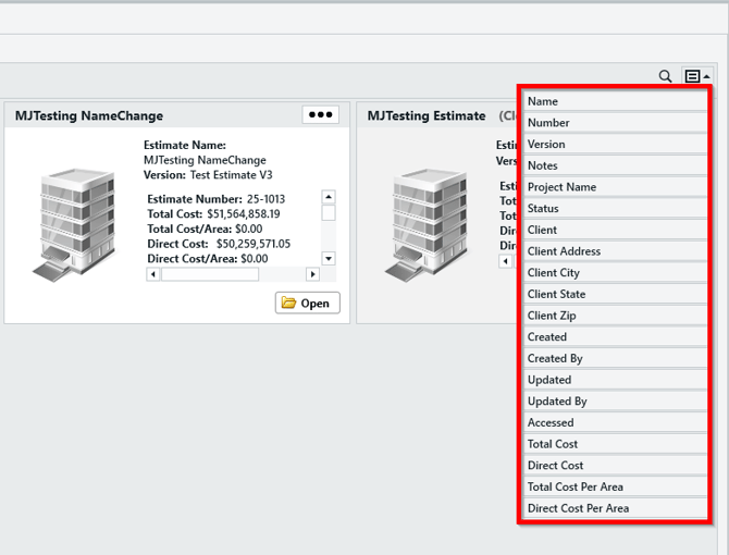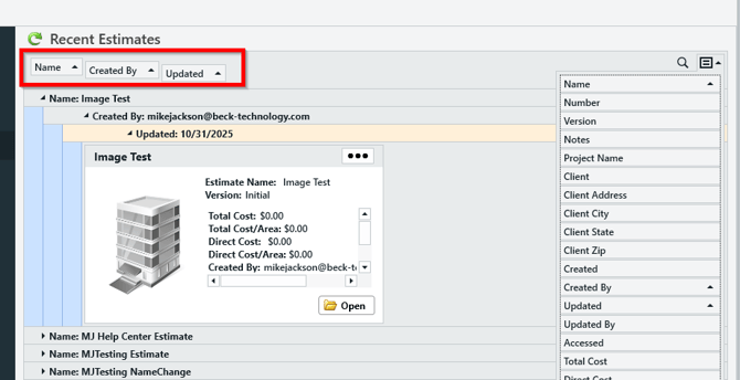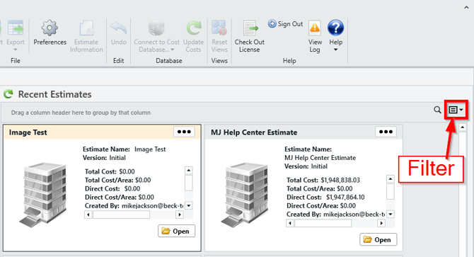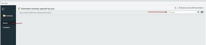 Recent Tab: When searching in the Recent Folder, the results will be restricted to estimates that exist in your recently accessed projects list.