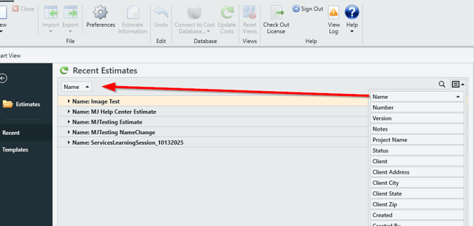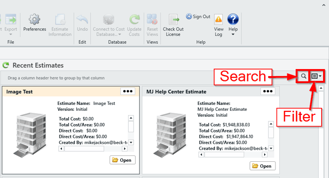 Just remember that this is not a database-wide search, so if an estimate is not on your recent list, it will not be displayed in the results.