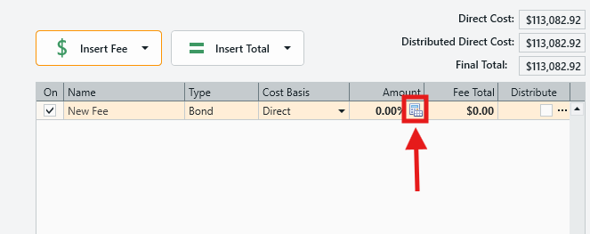 Click on the Calculator icon that appears in the Amount column to open the Bond Editor.