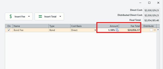 You’ll see that the Actual Fee Amount column immediately shows how much the fee adds when it’s calculated against your current Direct Costs.