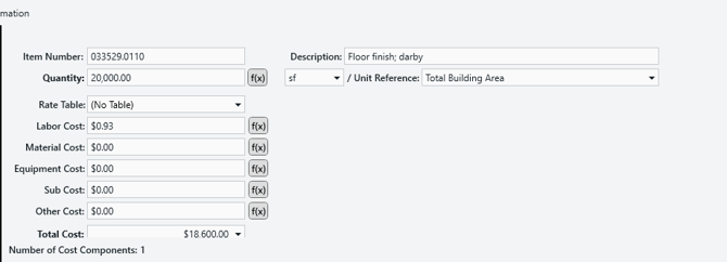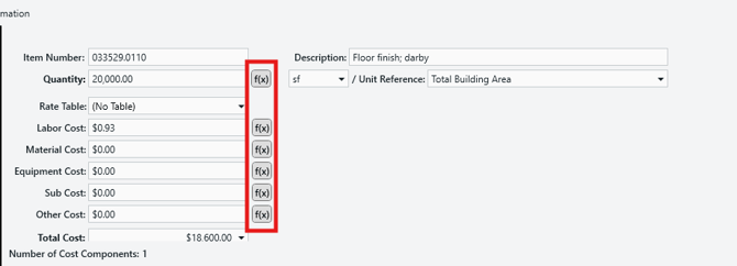 - The Quantity field, as well as all the Cost fields, can be driven by a formula. Click on the ‘f(x)’ button next to any of those fields to set a formula.