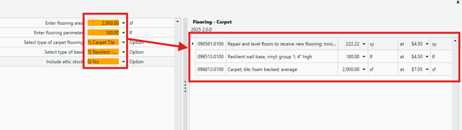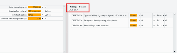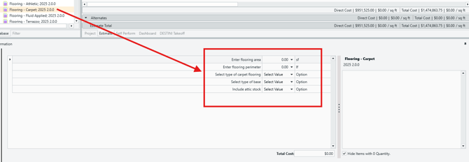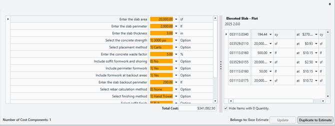 The Assembly Items window is the hub for adding, configuring, and applying Assemblies to your Estimate. When working with Assemblies, the CIV reflects how individual selections influence the resulting cost structure. As Assembly questions are answered, a list of related costs is displayed to show which line items are included and how the Assembly is being built. This provides transparency into the Assembly logic and helps users understand how costs are generated.