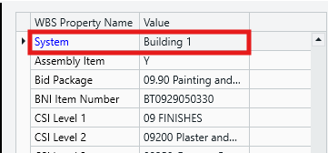 The WBS Property window allows users to modify WBS properties for the selected cost item(s) in the Estimate View.