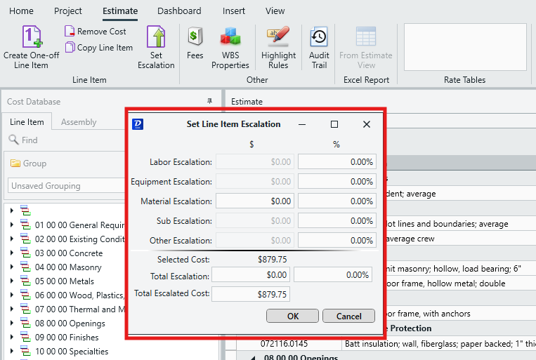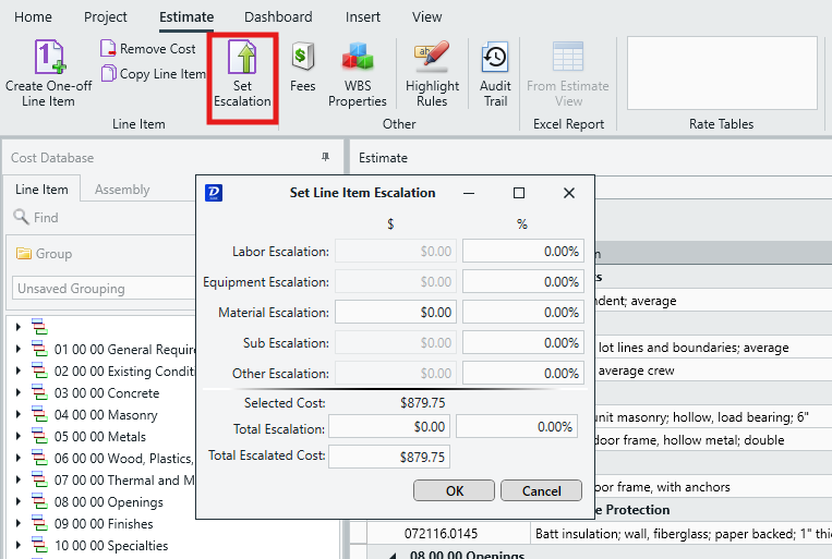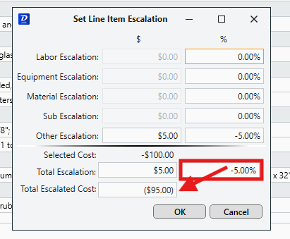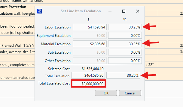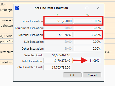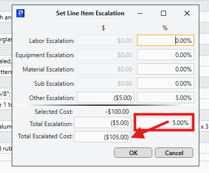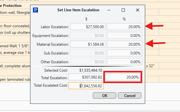 The Set Escalation feature in Estimator allows you to escalate a cost value by a percentage or set dollar amount.