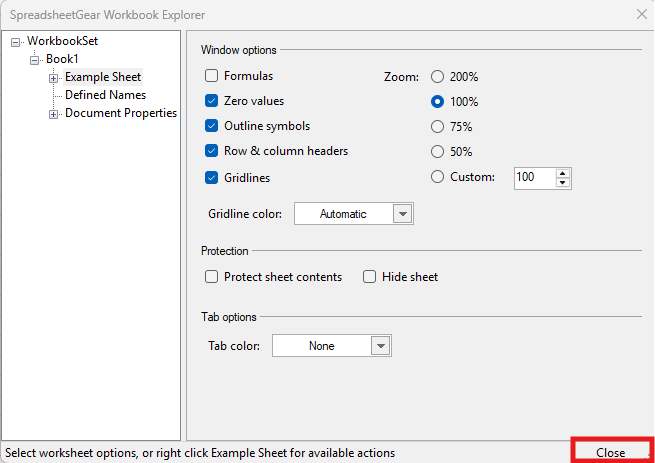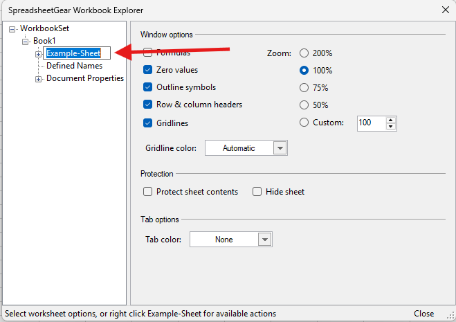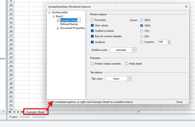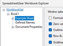 - Double-click on the affected sheet tab to open the SpreasheetGear Workbook Explorer window.