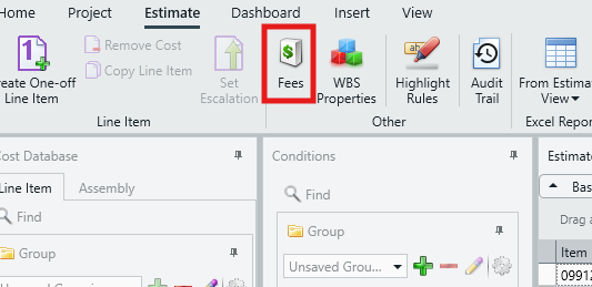 - Add a fee to your estimate and select a fee type. More instructions regarding adding and setting up fees can be found in the following article: An Overview of Fees and the Fee Editor.