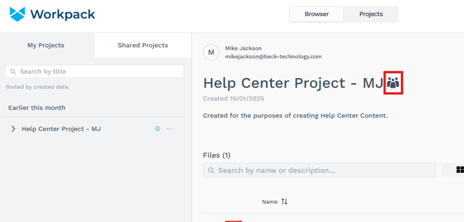 - The created project will be displayed in your dashboard with a ‘shared within the company’ icon, as highlighted below: