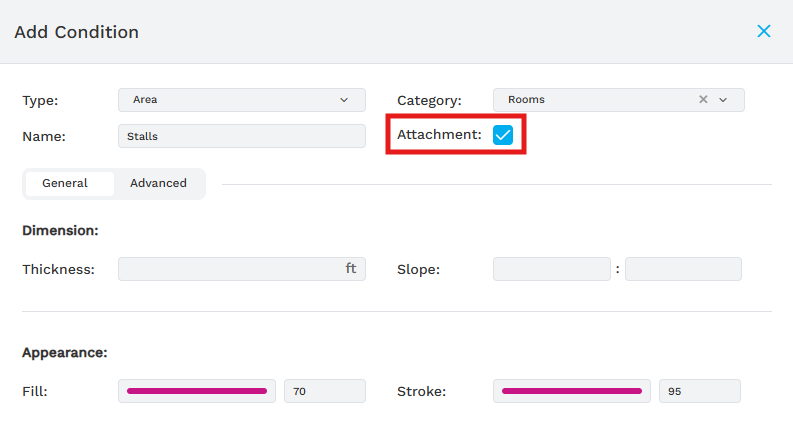 - Setup: Any Condition type can be designated as an attachment during the custom Condition creation process.