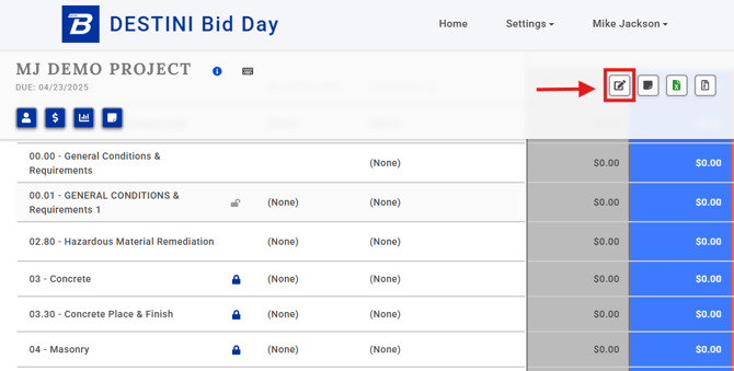 Bid Day has been upgraded to allow Project Admins greater control over the General Requirements in their active Bid Day projects.