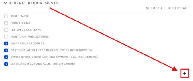 Add Custom General Requirements to an Active Bid Day Project