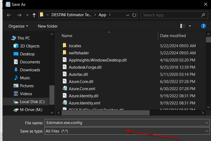 1. Navigate to location - C:\Program Files\Beck Technology\DESTINI Estimator Team\App