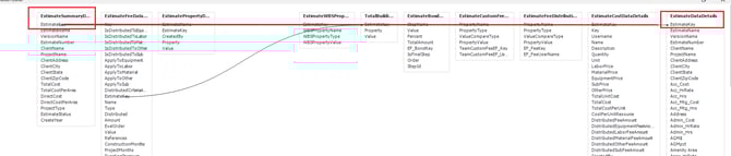 16. Establish a relation from EstimateKey of EstimateSummaryDataDetails table to EstimateKey of EstimateDataDetails using the click-and-drag method with the mouse.