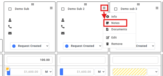To leave a note on a subcontractor: